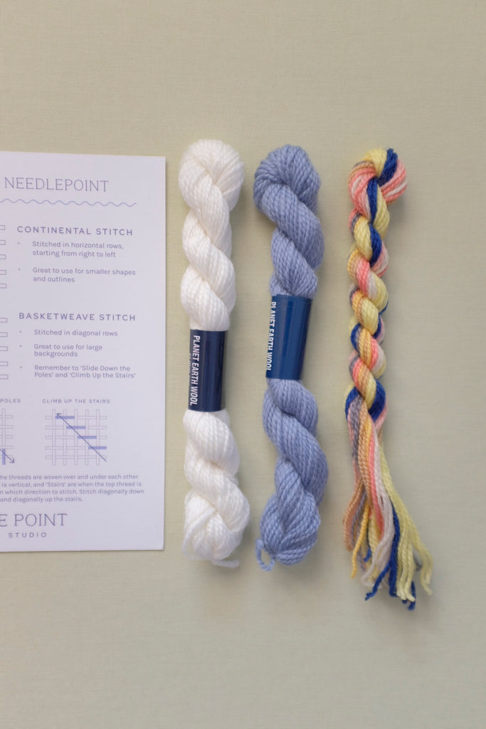 Our Blue Angel canvas is hand painted on 13 mesh. The design size is 3.5" x 4.75" on a total canvas size of 7.5" x 9".